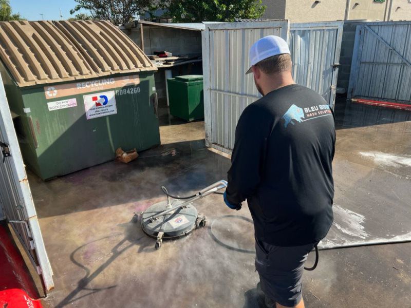 Commercial pressure washing by Bleu Bison Wash Solutions not only improves the curb appeal of your business but also: